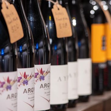 We have a selection of over 80 curated wines from all over the world. The idea is that if you like a wine on the menu, it'll be on the shelf for you to take home. We're also happy to have you pop a bottle in-house for an additional corked fee price.